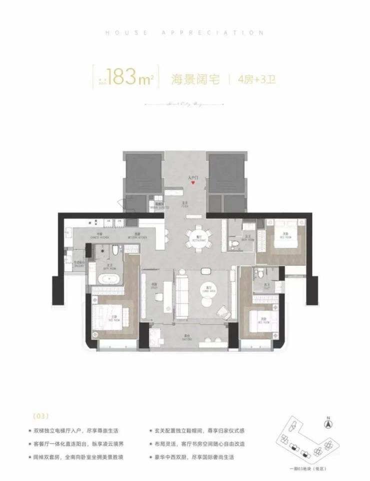 243㎡4房精装海景公寓,备案总价2139-2944万(层高3.5米)