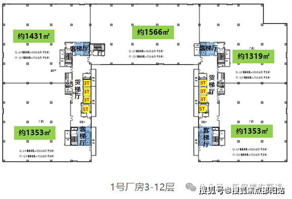 首层荷载 1500 KG/㎡,2-6层荷载 1000 KG/㎡,7-13层荷载 750 KG/㎡,设备放心布局。