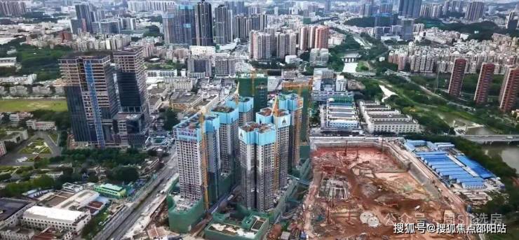 阳基御龙湾原为竹村城市更新项目,总占地面积约8.6万㎡,总建筑面积约38.8万㎡,共分2个地块开发,综合容积率4.5,总规划超2600户,涵盖品质住宅、商业办公、幼儿园为一体的综合体。