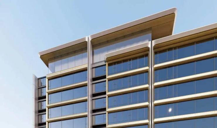 同时,外立面以超大窗墙比采用大面玻璃,搭配金属和石材,整体质感非常通透,采光和颜值都提升一个Level。