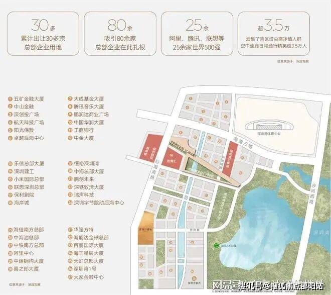 而后海在深圳湾中是当之无愧的黄金地段,是中国总部企业最为密集区域之一,目前约80家总部企业,500强进驻企业超20家(中国华润大厦、阿里巴巴、中建科工大厦、字节跳动、中铁南方等),总投资规模超1000亿(强度达到286亿/平方公里),堪称深圳城市名片区域、土地价值最稀缺区域、准入门槛最高区域、配套最顶级醇熟区域。