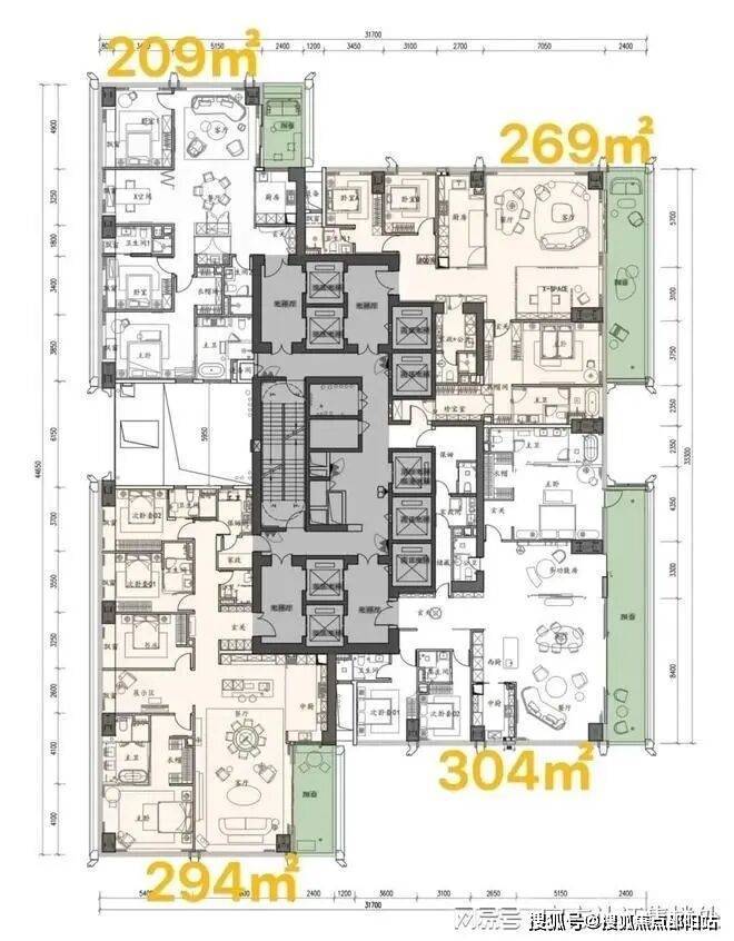 结构与安全保障:采用中央核心筒+边柱承重结构,室内无剪力墙(尤其500㎡以上户型),支持业主自由重构空间。避难层改造为观景会所,地下车库配备量子安全系统,确保信息与居住安全。