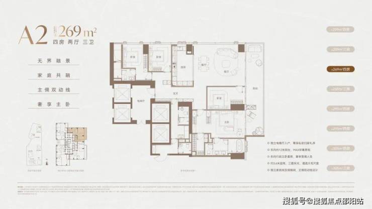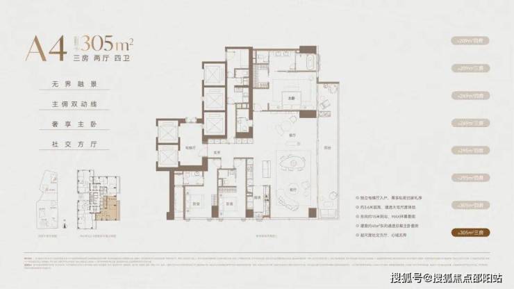 · 低区5F起(150米以内)约209-304㎡四房以上大户型;