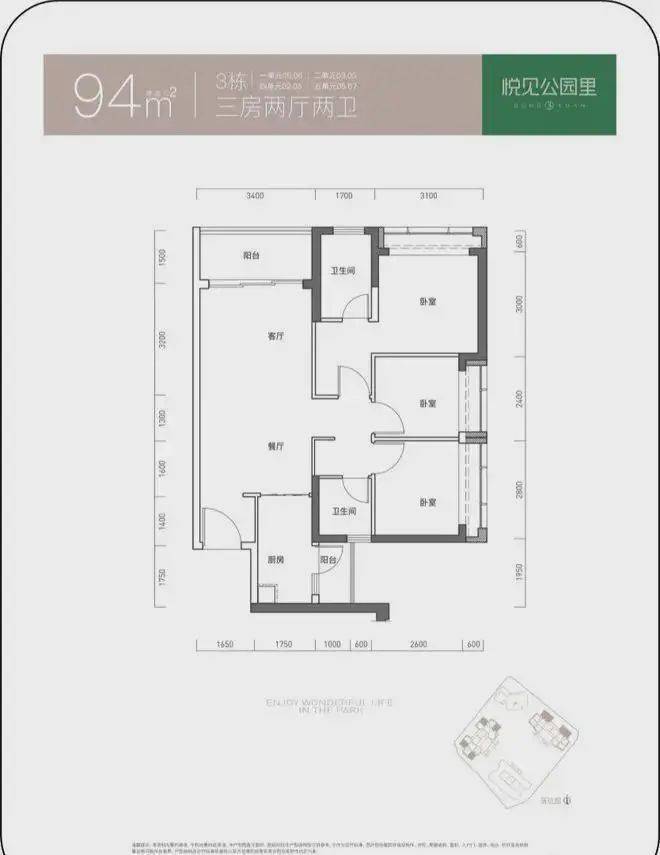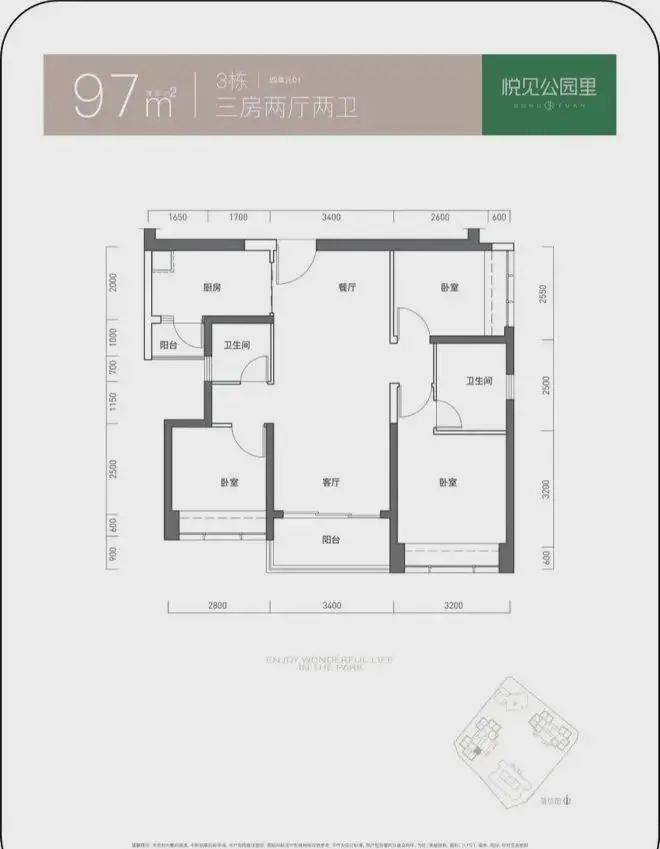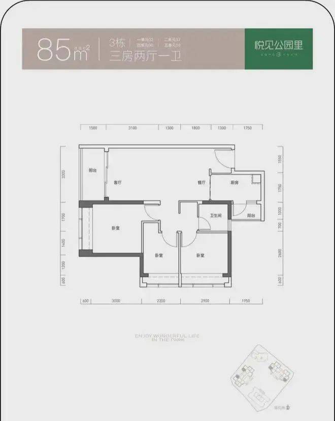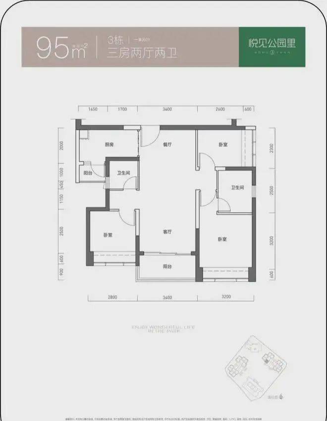 建面约95平的3房2厅,经典的“双龙抱珠”设计,双卧室+客厅采光,卧室分列两边,和父母同住,也能做到互不干扰。