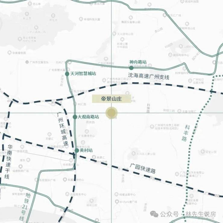 合生・帝景山庄坐落于广州市天河区奥体路,其南侧紧邻广州市的标志性建筑、作为羊城十景之一的广州奥体中心。该项目的北面则与广州科学城接壤,广州科学城是广州发展战略的关键区域,同时也是高新技术产业示范基地。而在项目的东面,便是金融城板块。合生・帝景山庄正处于这三大 CBD 构成的金三角核心地带 。