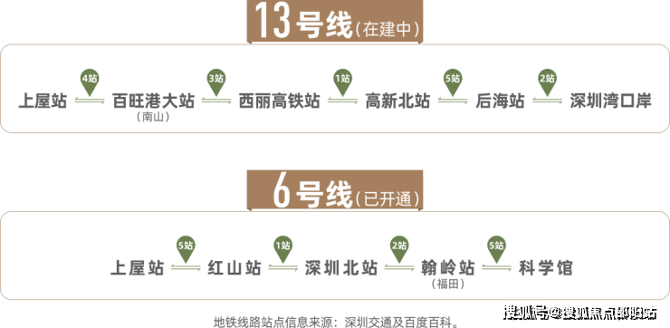 13号线据深圳交通局官网称将在2025年年底开通,该线路也是深圳3条快线之一,号称“深圳科技核心大动脉”,从南到北,串联深圳湾总部基地、后海中心、南山科技园、西丽高铁枢纽、留仙洞总部基地、白芒科研机构、宝安石岩科创城等多个重要片区。沿线华为、中国电子、腾讯、阿里等500强汇集,大批高新人才聚集,形成科创阵地,势必引领片区经济崛起。全程时速120公里,4站到南山百旺港大站,7站到南山西丽高铁站,8站到高新北。