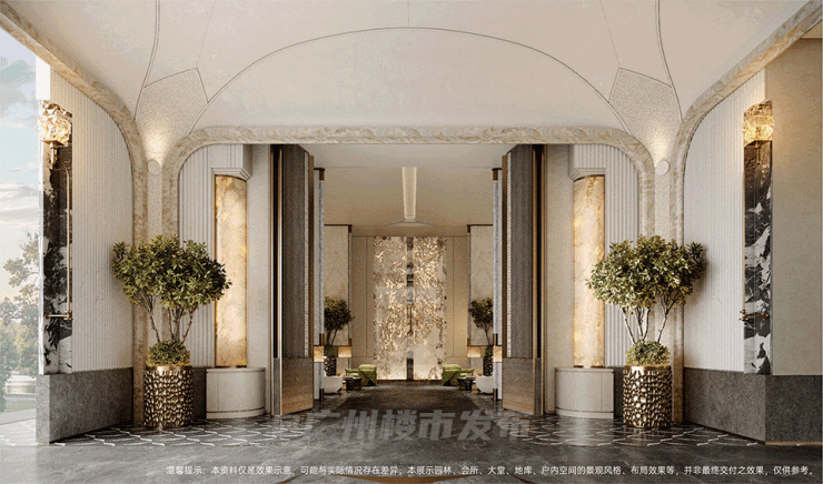 在公区规划上,从建筑外立面到园林、会所等,均流淌着鎏金显贵美学。
