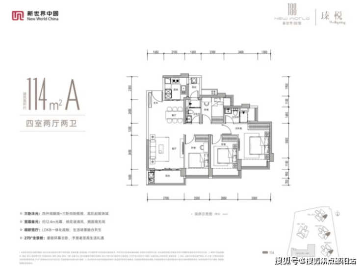 • 98-114㎡ 4房2卫:爆款改善,多开间朝南,空间灵活