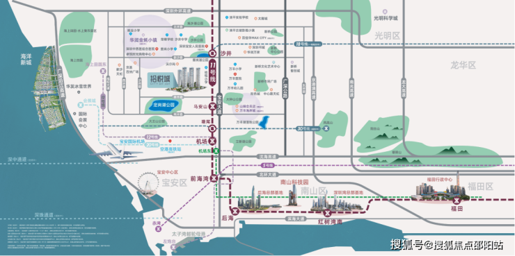 交通方面,对于日常出行依靠地铁的家庭来说,项目与11号线沙井站直线距离约700米,11号线作为深圳的快速地铁线路,可以实现5站到机场、8站通前海,10站到后海,12站到车公庙,四十分钟内迅速到达核心都市生活圈,快速畅享全城。