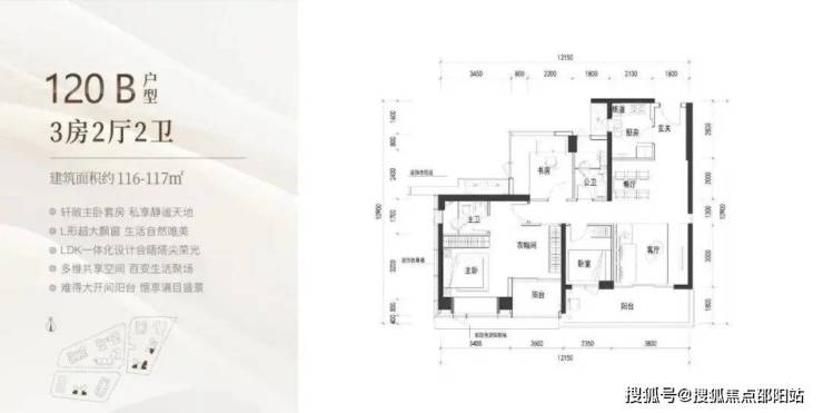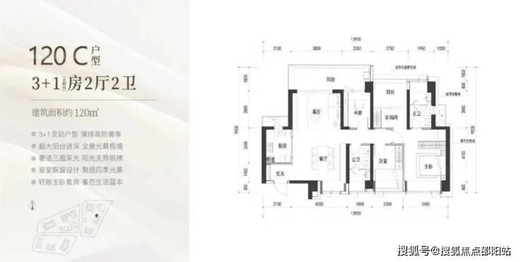 120㎡有B户型传统竖厅以及C户型南北通