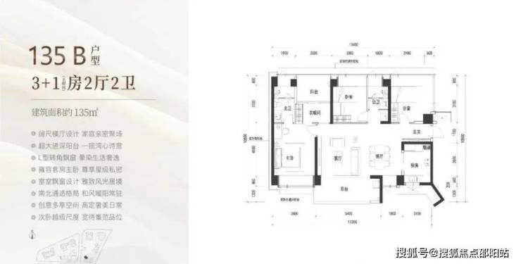 135㎡为B户型横厅格局