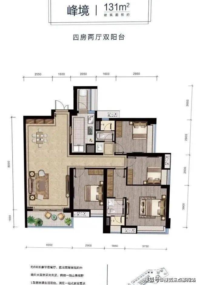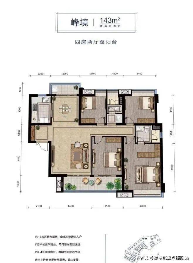 其建面约131-143㎡大平层四房户型采用全南朝向,且这远优于市场上普通的阳台朝南。