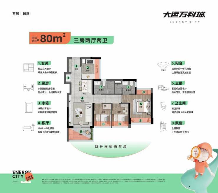 建面约80㎡不仅做到三房,还配置两个卫生间