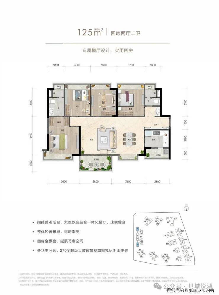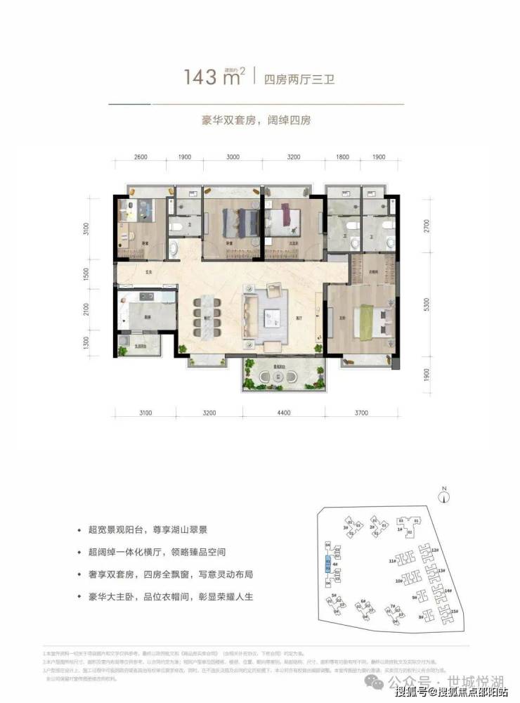 超阔绰一体化横厅,彰显荣耀人生。双套房配置,四房顶尖之作。