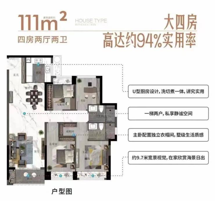 物业:万科物业【万科红树东岸】户型赏析建面约90㎡三房两厅两卫,约9.5米海景面宽,海风推窗入,阳光照心间,超94%实用率,餐客一体化,空间设置更合理,动静分区,让生活与安逸各得其所,建面约16㎡超大主卧套件,属于自己的小确幸两卫干湿分离,起床洗漱不排队建面约111㎡四房两厅两卫一梯两户,出入电梯不排队,更享私密居住体验约9.7米宽海景视觉,享270°阳台景观视角,让窗外的风景成为家中装饰超94%实用率,阔绰四房一步到位U型设计宽敞厨房,装得下双开门主卧配备独立衣帽间,生活总要有点仪式感建面约151㎡四房两厅三卫片区仅此十层瞰海小洋房一梯两户,电梯刷卡入户,私享电梯厅,多一份私密也多一份空间高达99%使用率,让更多空间留给生活万科创新四叶草户型,三代同堂各得其所双阳台设计,南北对流,与清风阳光共处一室