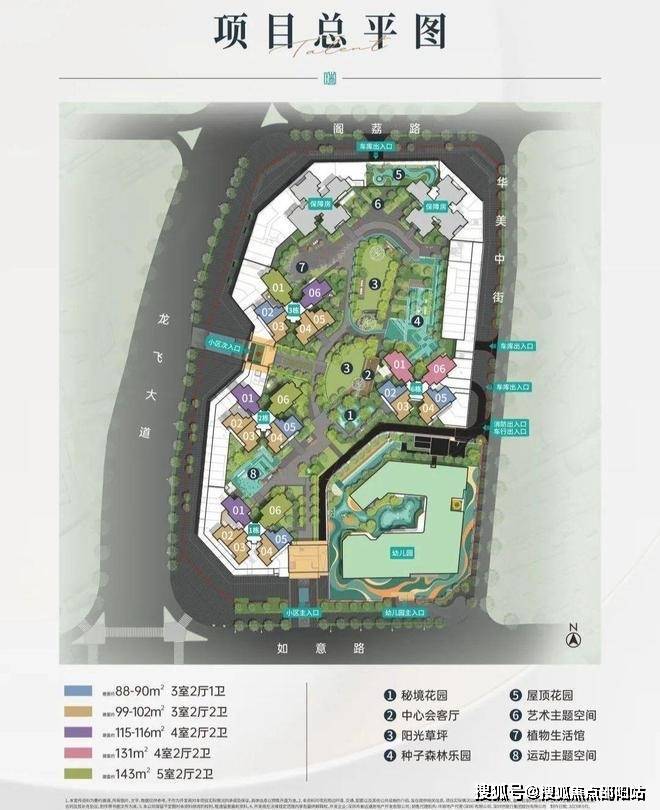 景观园林:成长型人文花园,一环两轴六园