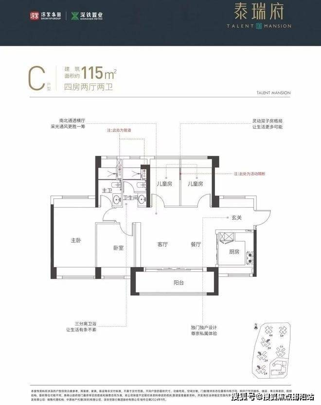 品质户型:约78-80%高使用率,南向全周期灵活户型