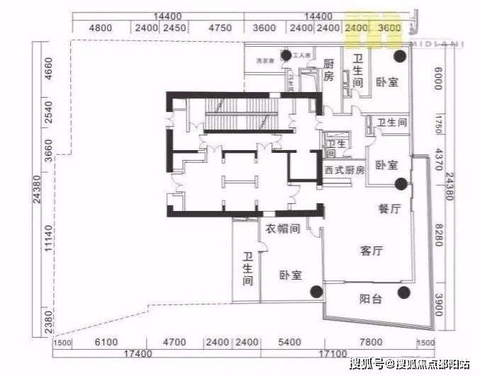酒店式公寓,每层7户:414平朝东,394平朝东北,320平朝西南,258平朝西北,130平朝西,94平朝西。