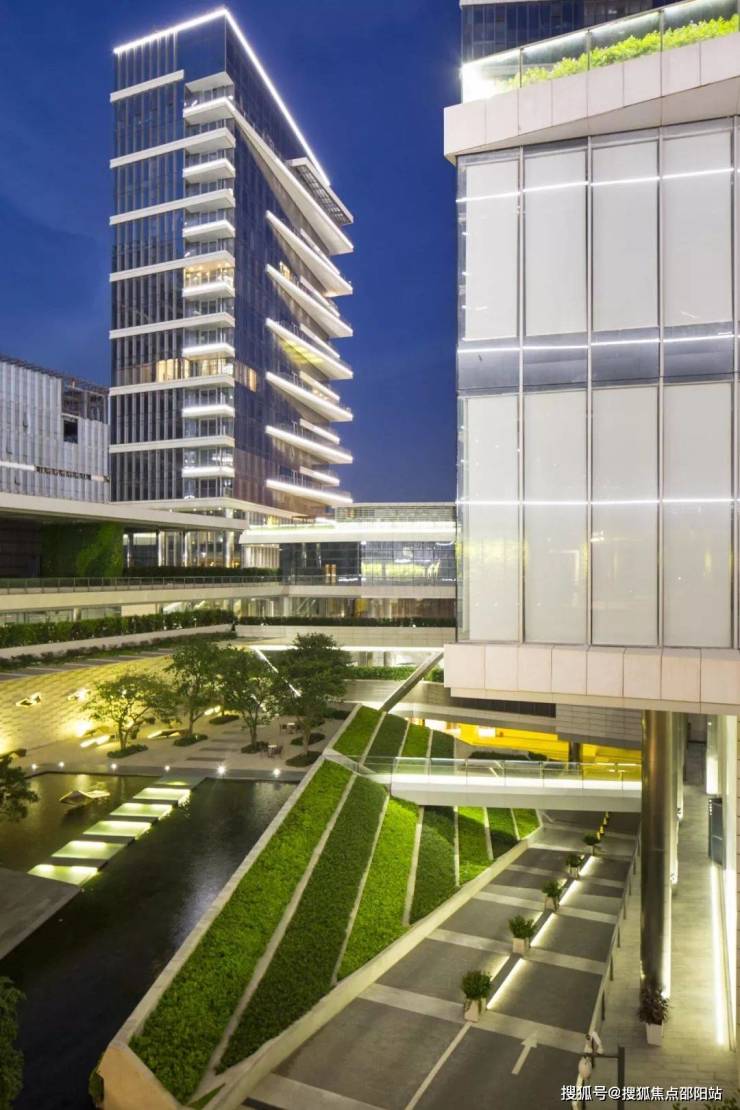 深圳湾一号外立面材料采用2.4米宽幅、全景、无梁幕墙。整体晶莹剔透,凹凸有致,具有现代化的抽象美和立体感,在夜晚灯光打开时,显得更加璀璨。