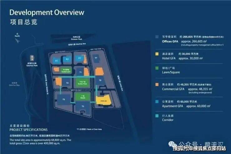 项目规划地上建筑面积为195,000平方米,当中包括办公120,000平方米、公寓60,000平方米、商业14,500平方米,将成为前海的综合体新标杆。