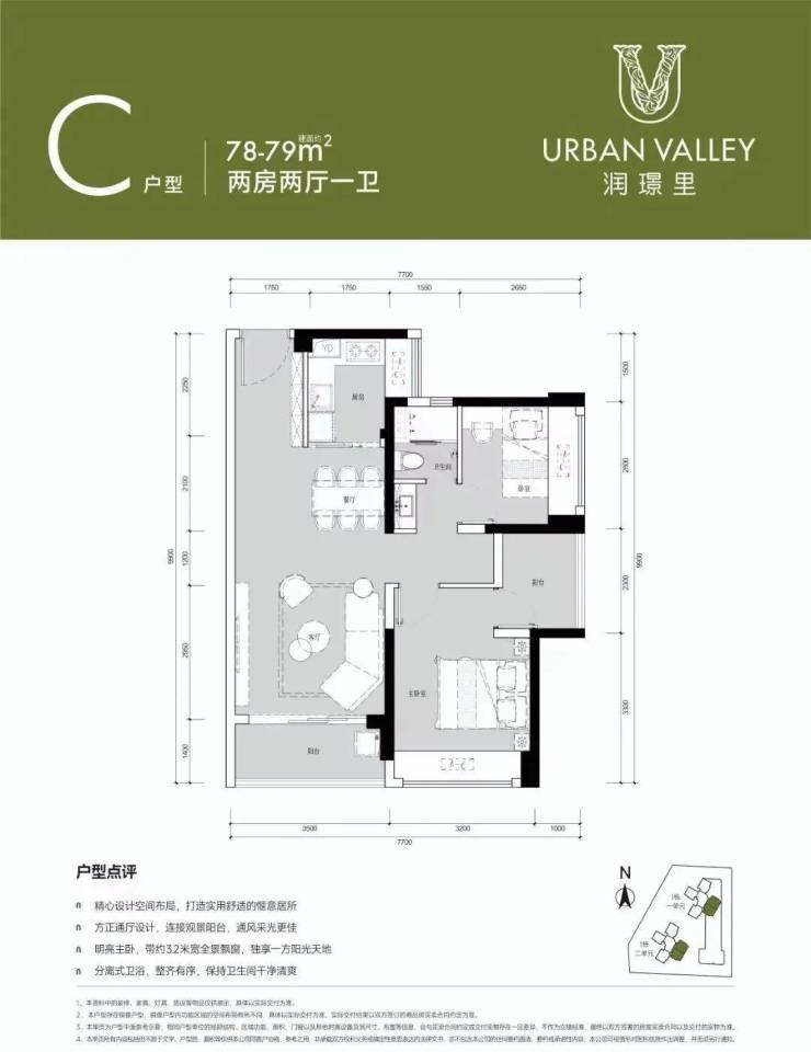 设计的是竖厅格局,LDKB客厅一体化设计,客厅3.5米开间,3个卧室分别做到了3.2米/2.8米/2.3米的宽度,U型厨房,卫生间三段式分离,阳台都是东南朝向。