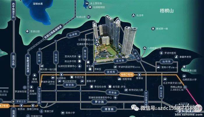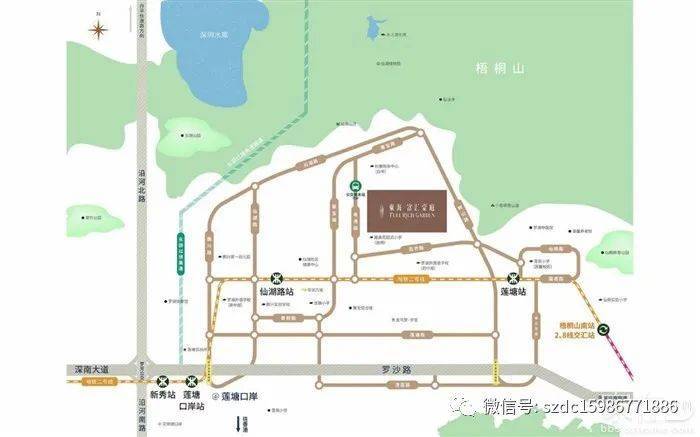毗邻国家级风景名胜区-梧桐山、AAAA级风景名胜区-仙湖植物园、深圳水库、仙桐体育公园,是步行约1分钟便可达到登云道,攀登梧桐山脉;是国内罕有的位于中心城区、以滨海、山地和自然植被为景观主体的城市郊野型自然风景区;