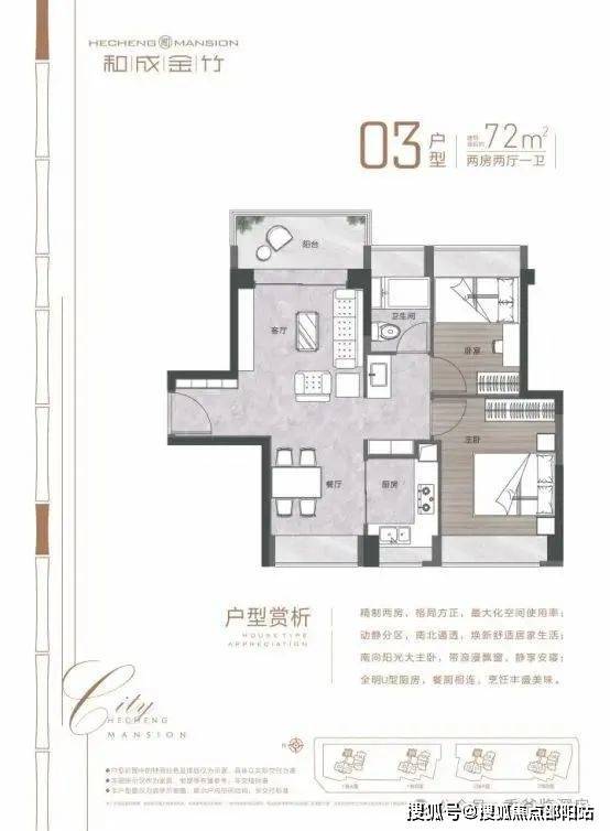 和成金竹项目精心打造了多种户型,满足不同家庭的需求。其中,2房2厅1卫的户型建筑面积约为72平方米,空间布局合理,功能齐全,适合年轻夫妇或小家庭居住;3房2厅1卫的户型建筑面积约为87-88平方米,提供了更多的居住空间,适合有孩子的家庭;3房2厅2卫的户型建筑面积约为97-98平方米,配备了两个卫生间,进一步提升了居住的便利性和舒适性。所有户型均采用了精致的设计理念,注重采光、通风和空间利用,旨在为居民打造一个温馨、舒适、高品质的居住空间。