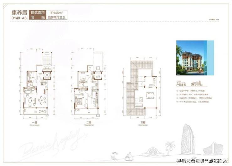 D140-A1、A2、A3、B1户型:约145㎡,4房两3厅3卫