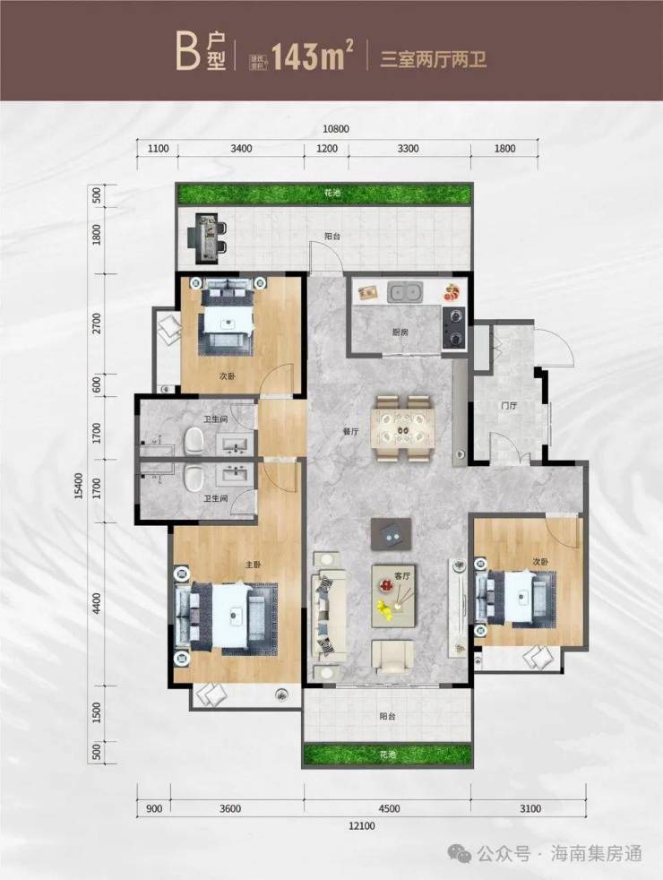 建筑面积约:143㎡