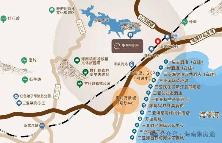 ①依山傍水,拥享1500余亩南田温泉;②出则繁华、入则鸣翠,缔造海棠湾山海度假标杆!