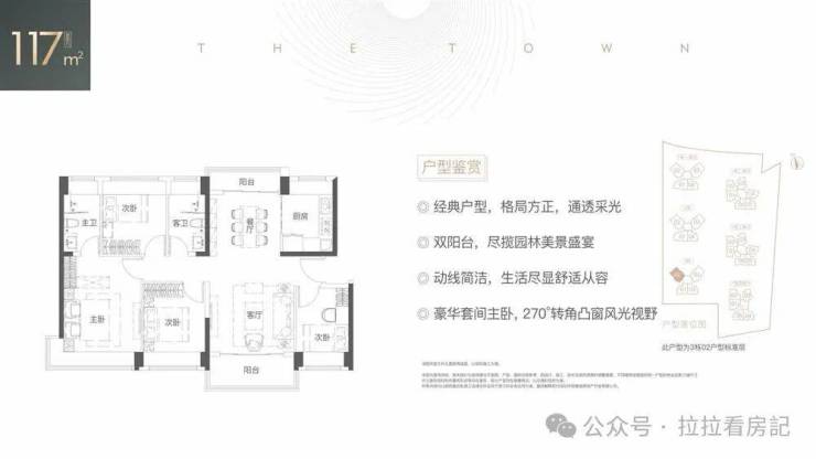• 117㎡四房两厅两卫:竖厅南北通透格局,独门独户,隐私性好。客厅3.9米开间,空间开阔,动静分区合理。主卧超大套间270°超广角视野,4个卧室都不用睡飘窗,居住舒适度高。U型厨房,操作空间更充裕,卫生间干湿分离,得房率77.41%(不含赠送),双阳台设计。