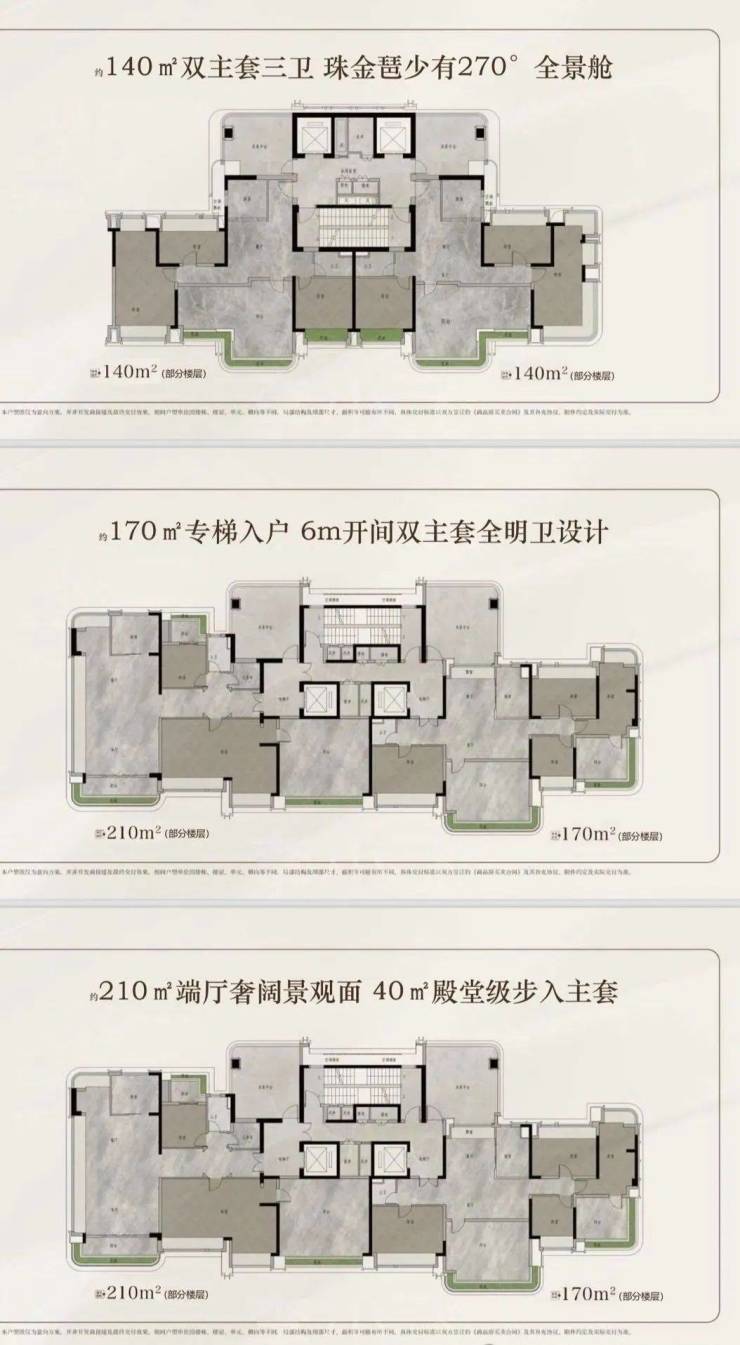 【产品配置】北区2T3/3T4塔楼,南区2T2板楼,建面约120-140-170-210㎡云幕平层