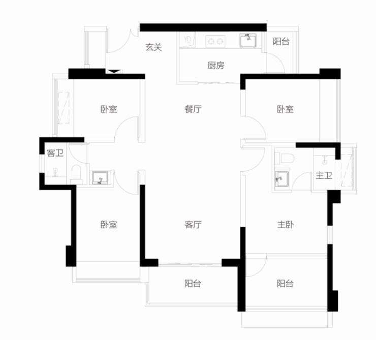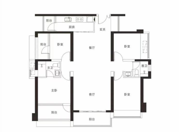 【3栋4栋06户型118㎡4房2卫】 客厅朝西带阳台,2房朝西,1房朝南,1房朝北 单价区间:7.5-7.7万 总价区间:885万-910万