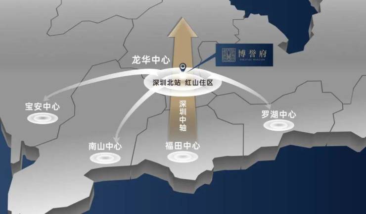 圳心中轴:北站红山双芯加持,深圳“中轴脊梁”l 深圳龙华——傲踞深圳地理中心和城市发展中轴,铸就产值万亿级的深圳“中轴脊梁l 鸿荣源博誉府坐享中轴优越地理位置,多维立体路网加持,30分钟内驰骋宝安、南山、福田、罗湖区,悦享高效便捷生活