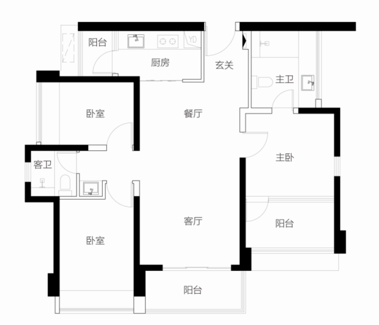 【96-97㎡3房2卫户型】三开间西南朝向,视野采光俱佳功能实用三房,动静分区无干扰,单价区间:7.17-7.64万/㎡ 总价区间:688-738万