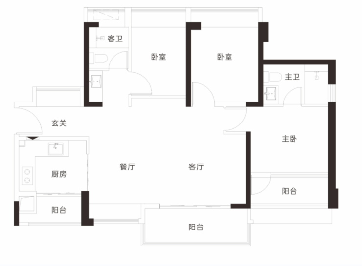 【1栋2栋01户型94㎡3房2卫】 客厅朝东带阳台,主卧朝东,2房朝北