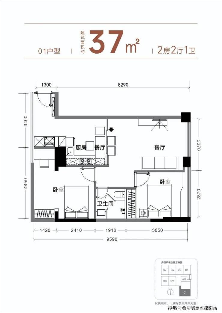 【产品面积】约37㎡小两房(实际套内使用面积接近54㎡)