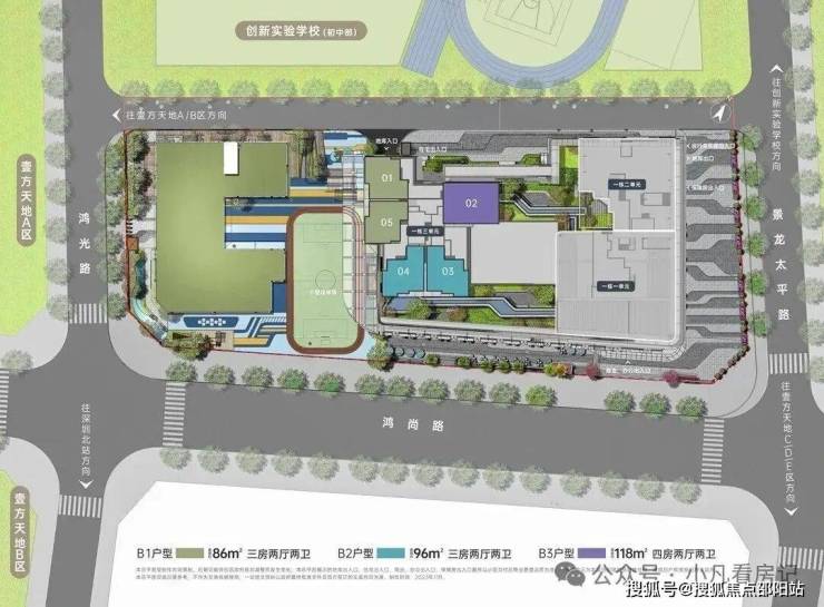 项目配套建设2400㎡幼儿园,配备足球场、环形跑道、滑梯等活动设施,家门口教育,目送孩子安全往返。九年一贯制公办创新实验学校环伺在旁,高标准教学配置,雄厚师资力量,筑梦孩子菁英未来。