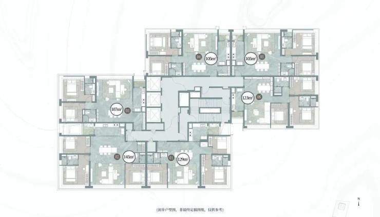 户型:105㎡、123㎡东南向三房、 129㎡东南向三房、 145㎡西南向三房