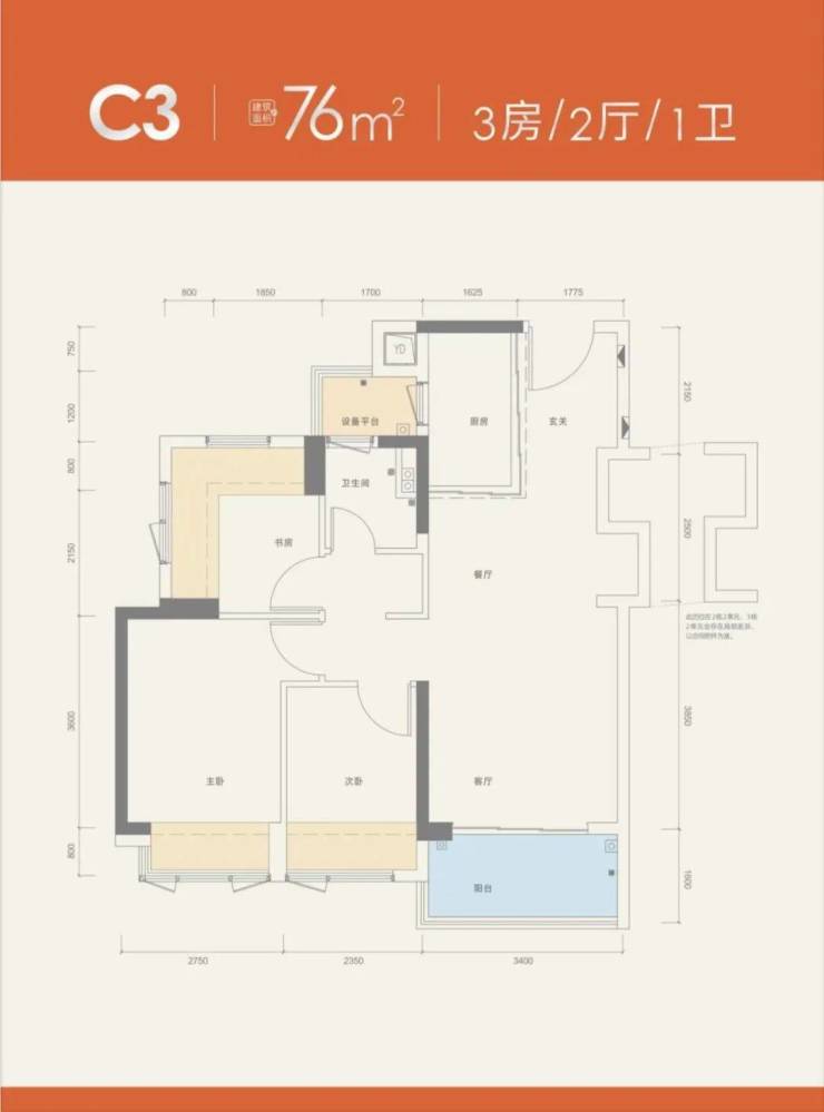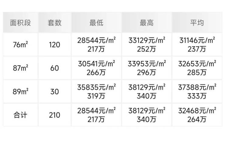 76㎡的3房2厅1卫,折后总价186-214万/套,单价2.43-2.82万/㎡。