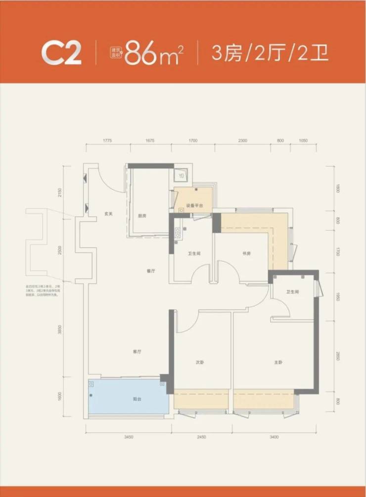 86㎡的3房2厅2卫,折后总价227-244万/套,单价2.6-2.8万/㎡。