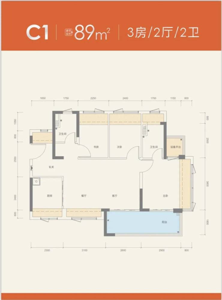89㎡的3房2厅2卫,折后总价272-289万/套,单价3.05-3.25万/㎡。