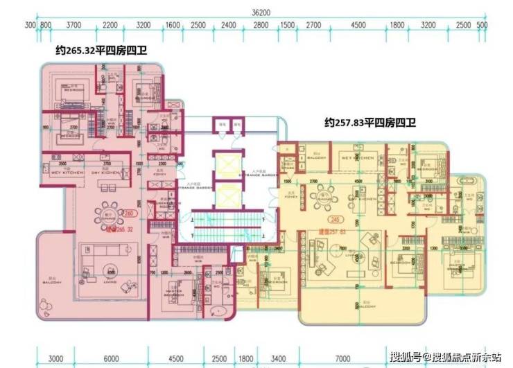 设计上也非常奢侈,都是4房4卫的大平层,3套间+西厨,加上景观也相当好,属于整个项目的精华部分了。