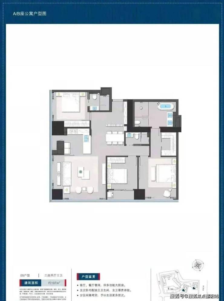 公寓197平户型三房两卫: