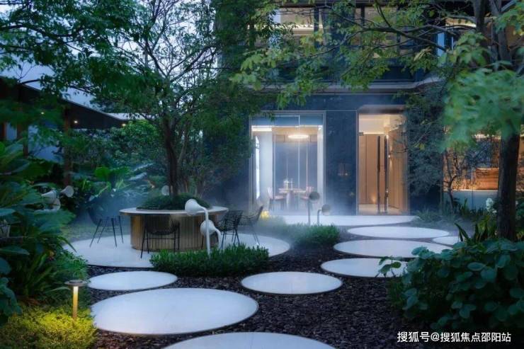 置身海语花园中,休憩卡座、种植池、汀步皆以圆形注释,赋予柔和视觉盛宴,为海居生活增添美好。