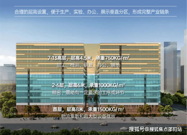 普通厂房二层以上普通层高不足,空间规划受限。而光明科兴科学园的高标厂房,首层层高高达8米,2-6层层高6米,7-13层层高4.5米,完美满足企业工业上楼的需求。