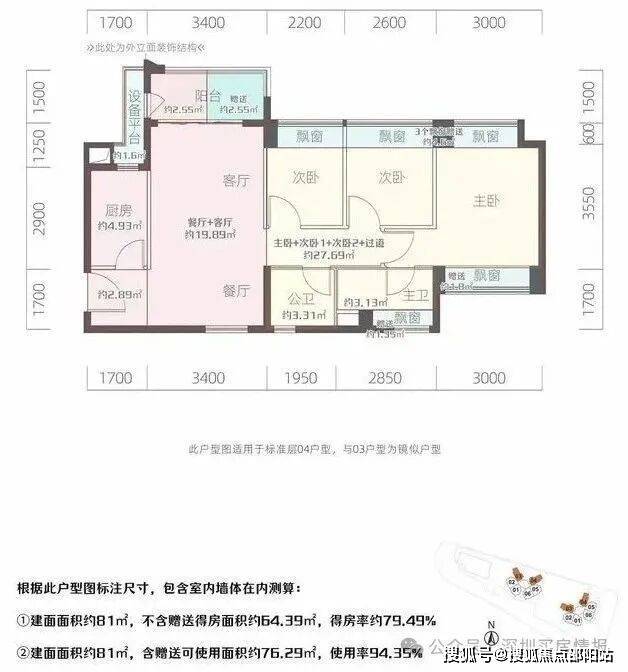 占地面积约0.9万㎡,总占地面积约6.4万㎡,计容建筑面积约4.95万㎡,容积率5.52,绿化率40.51%,共由3栋31-32层住宅组成,其中1栋1/2单元商品房32F,1栋3单元公共租赁住房(部分开发商自持租赁)。