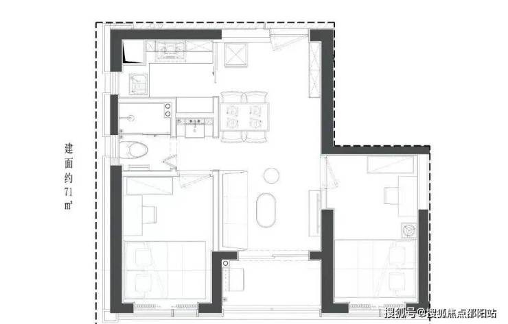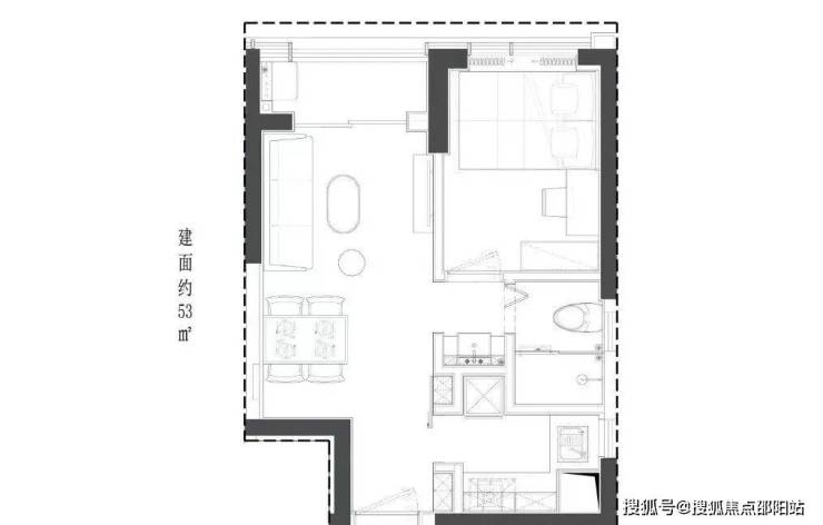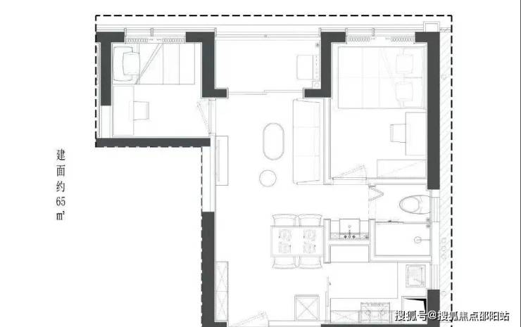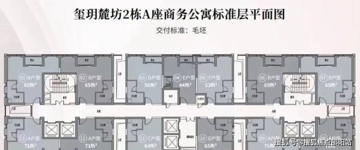 目前在售的商务公寓户型包括44㎡的1房、53-56㎡的1房以及63-65㎡和71㎡的2房2厅1卫。