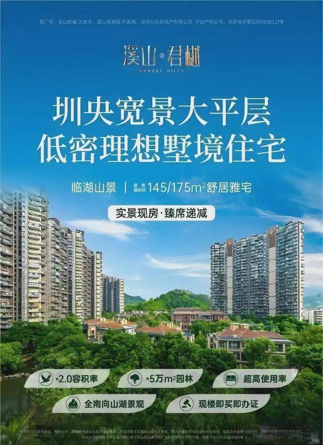 溪山君樾是由深耕珠三角多年的知名房企联合打造的高端城市山居项目,以 “打造城市山居标杆” 为理念,延续其在深圳、东莞等地多个山居豪宅的开发经验,凭借对自然资源的极致利用和产品细节的匠心打磨,为项目品质提供坚实保障。