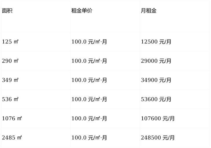 租金均价:100.0 元/㎡·月